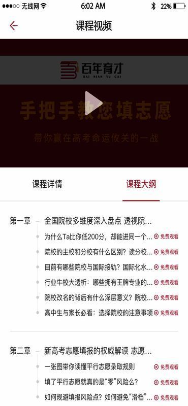 下载并安装百年育才AI高考平台APP,打开应用后定位所在城市。浏览APP功能,选择想了解的内容。点击绝招班,挑选可提供帮助的课程学习。观看课程视频时,可查看下方的课程介绍和大纲。点击“我的”,能查询消息、学习课程、测评报告等。