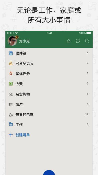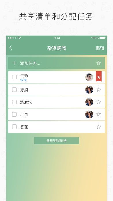 5. 与家人、好友和同事共享清单并协同处理任务。