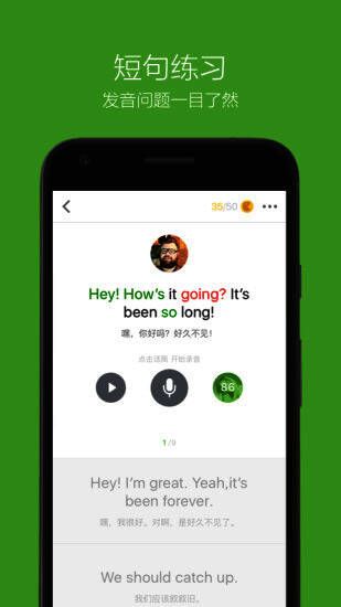 2、可以清楚知道单词发音。可以训练单个句子和单个单词发音。当你读一句话的时候,系统会将你读的单词标记颜色,黑色代表读的比较好,绿色代表读的很好,红色则意味着有问题。如果你发现单词标记红色,则可以只读这个单词反复练习。(贴图仅为说明观点);