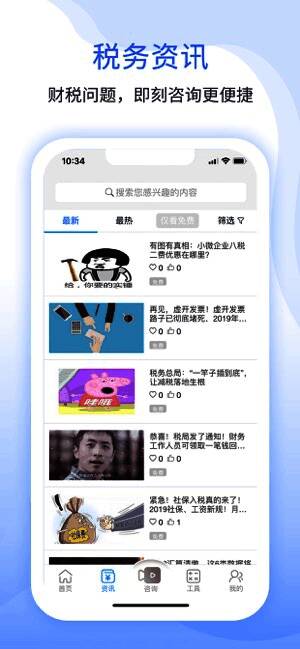 3、可在线了解税收问题,还能在首页观看更多财税知识