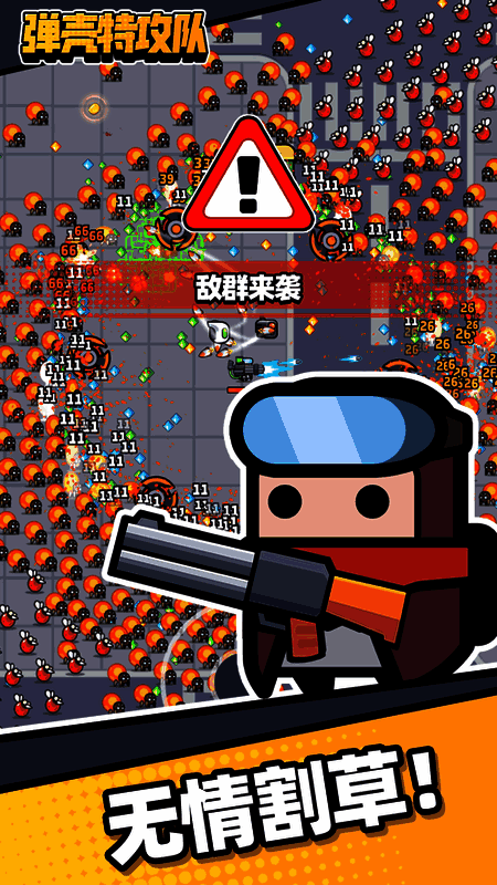 《弹壳特攻队》是一款超精彩的割草冒险游戏。游戏里有广阔地图,玩家能在此开启热血割草大战,面对各式各样的敌人并将其击败,还能收集使用诸多炫酷武器。操作简便,每次游玩都能有新发现。