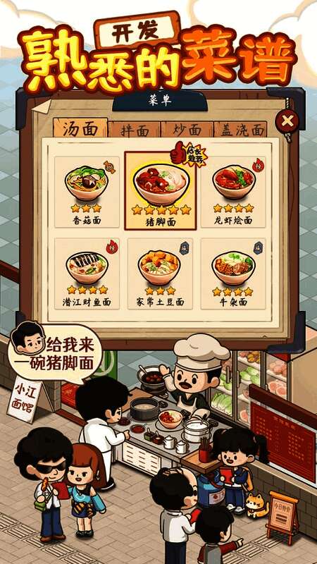 3、升级面馆解锁更多区域和美食,体验趣味面馆故事。