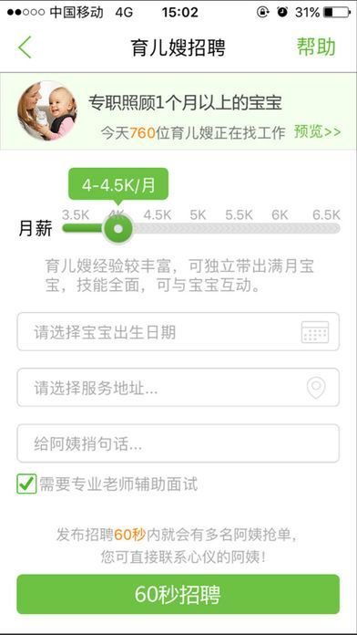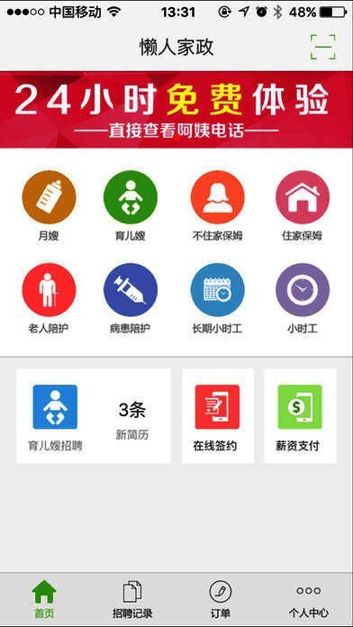 2、懒人家政为阿姨和客服人员都配备了app客户端,让招聘、应聘、咨询、客服等流程各自独立,互不干扰;