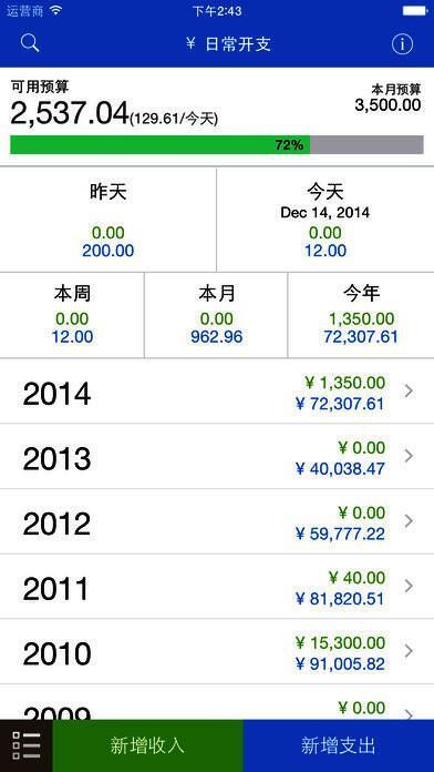 这款软件方便易用,能让你随时随地记录每日花销,轻松掌握每天、每周、每月的消费金额及去向,进而自由控制花销。
