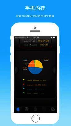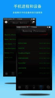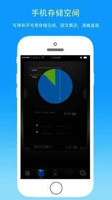 1、动态呈现手机使用状况;2、展示设备存储空间、电池蓄电量及手机进程;3、全面掌握本机信息。