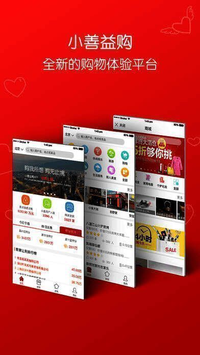 小善益购旨在构建一个拥有新机遇、新销售、新消费模式,全民与全商业共同参与的生活购物平台,这是北京润付通网络通信技术有限公司历经长期探索、研究与创新所形成的新型商业模式,消费者和商家都能在此感受新奇的购物体验。