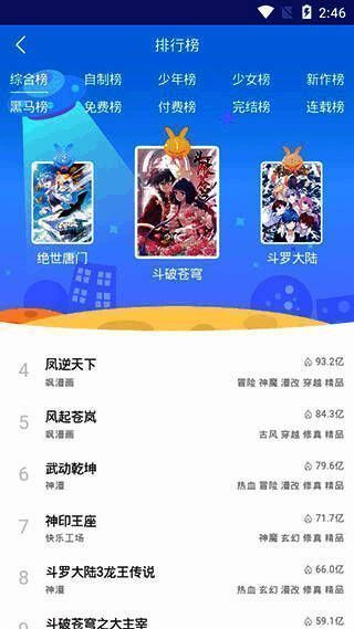 1. 分类齐全,随时想读就能轻松阅读各类漫画。