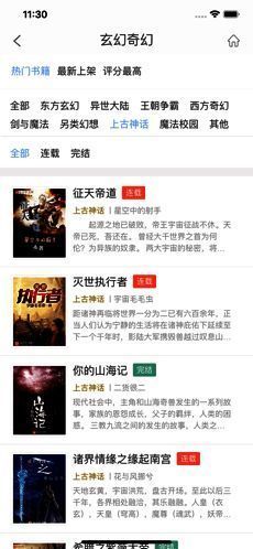 【内容齐全】:玄幻、都市、言情等各类题材应有尽有。