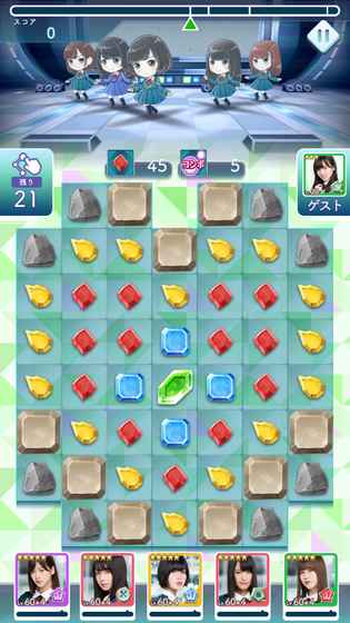它堪称欅版的梦100,但在某些方面又与之不同。游戏为闯关三消类,每个关卡都有不同挑战任务,有步数限制完成任务的关卡,也有时间限制完成任务的关卡。剧情围绕欅坂妹子们从甄选到成为爱豆的故事展开,“你”是帮她们实现奇迹的人。这是一款面向粉丝的游戏,不过也推荐非团饭的路人试玩。抽卡只需200石头,卡池里汉字坂和假名坂混合,现在卡池五星是一单沉默的大多数,打歌服十分好看。