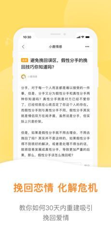 小鹿情感已经陪伴835万用户走过恋爱征程,让爱情梦想照进现实。超800万男孩借助它解决追女孩、找女友、挽救婚姻爱情等情感难题,涵盖聊天、约会、搭讪表白等各个方面。超500万用户在此受益,这里是亚洲领先的情感技巧交流社区,500多位情感导师和恋爱达人随时为你出谋划策,让你心想事成。