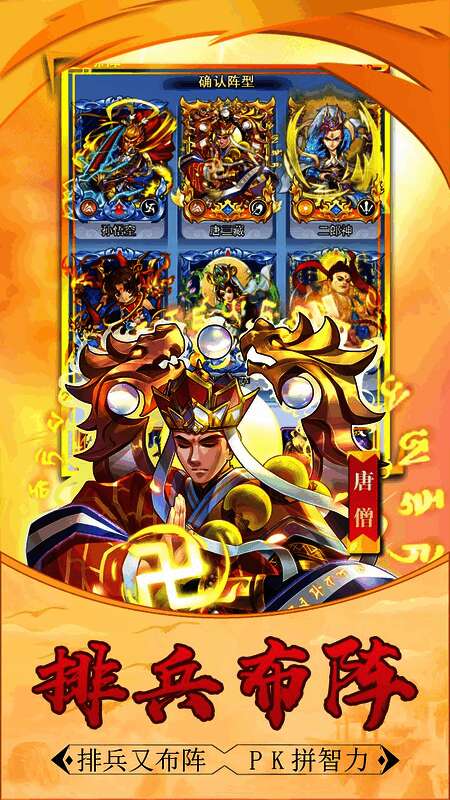 每场战斗可上阵6个神将。玩家能根据战斗需求,挑选心仪神将出战,每个神将都有专属酷炫技能与超帅立绘。华丽特效搭配丰富技能,让你尽情感受紧张刺激的西游神话大战!