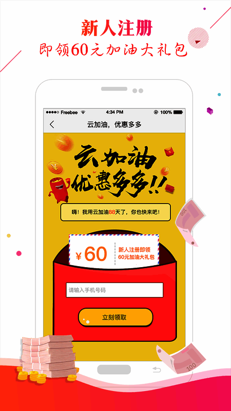 《云加油》,一款专为车主打造的专业优惠加油软件。只要注册,就能立即享用60元加油代金券。要是参与平台活动,更有满100减99的超级优惠等你来拿,让你加油轻松省下一大笔钱。