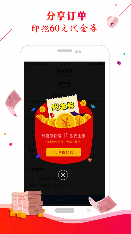 3、优化付款完成之后的交互体验,付款完成后自动弹出代金券分享界面;