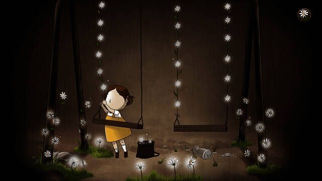 3、游戏故事以动态图画呈现,类似童话书。玩家需按场景要求与场景互动推动故事发展,比如点击菊花让女孩采摘、按顺序点击屏幕帮女孩夺回花环,甚至要倾斜设备完成互动。