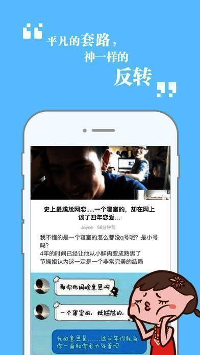 这是一款获千万用户认可的打败无聊神器,能拯救你的不开心。这里汇聚了各路老司机、段子手,每天都会更新热门有趣的段子、图片和短视频。加入我们,让自己成为一个有趣的人。