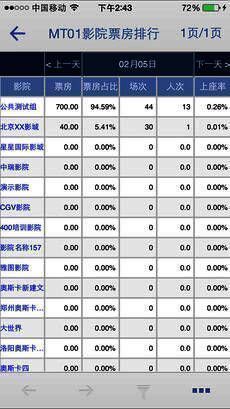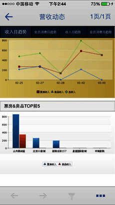 1、为影院提供营收、票房、卖品、会员的实时分析报表。