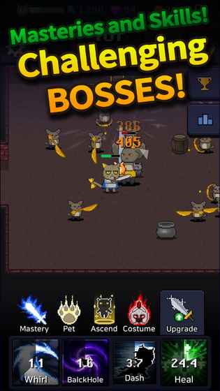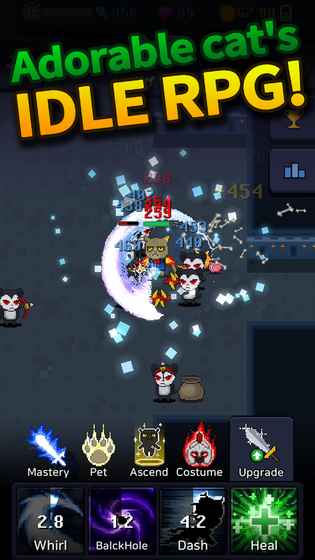 1、让猫咪勇者向着老鼠塔挺近,和塔内的老鼠们展开激斗,学习各种各样的技能,收集各种各样的装备,打造最强大的猫咪勇者;