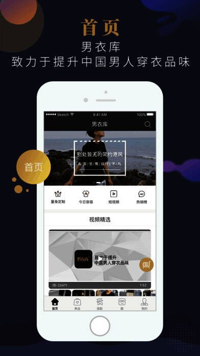 男衣库是服务于男士的正品男装购物软件,秉持提升中国男人穿衣品味的理念,以内容为引导,助力男性精准找到自身穿衣风格,自主选购合适服装。它包含量身定制、精品搭配和穿衣学堂等板块,穿衣学堂以视频动态形式呈现多元内容,每日更新热门穿衣搭配、男士发型、护肤、健身等信息。
