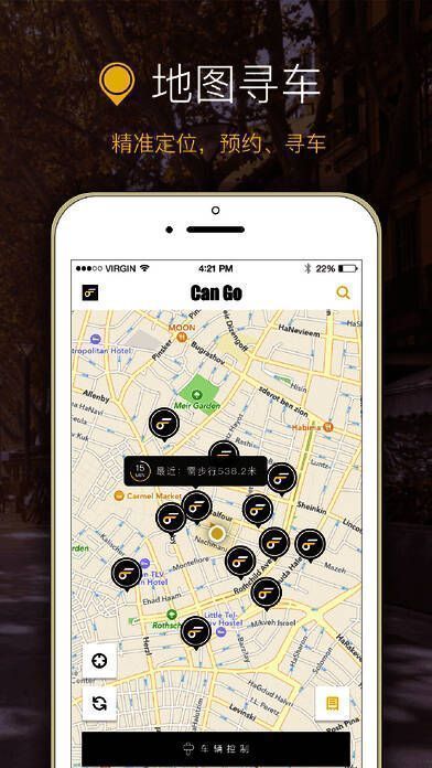 1、利用地图寻车,可精准定位、预约和查找车辆;