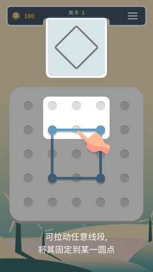 拖动任意线段并固定到某个圆点,这条线段就会被分割成两条新线段,新线段还能继续分割。如此一来,几条普通线段能变幻出无数奇妙图形。有些图形看似简单却韵味十足,有些看似复杂却规律明显。玩家只需简单观察、尝试并稍加思考,就能通关一个个有趣关卡。