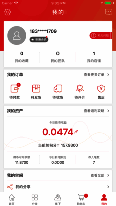积分系统:消费者在微返商城消费,平台按比例每日以积分形式持续返还,让消费变投资。