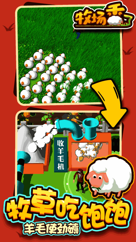 - 羊养得肥硕后,投入自动剪羊毛机,收获大量羊毛,让牧场更肥沃。