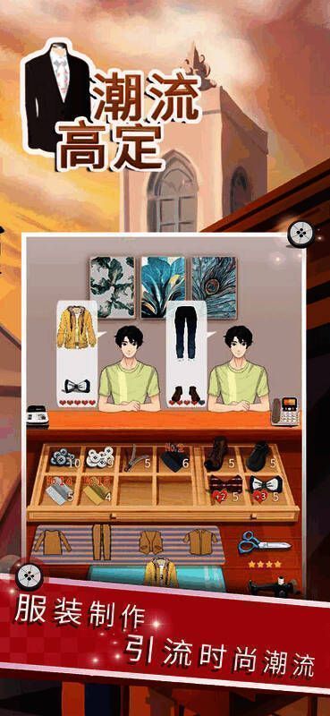 1、男士服装丰富多样,可学习设计新款式。2、能自由搭配学会的服装,成为潮流达人。3、玩法简单易上手,热情服务为顾客量身定制衣服。