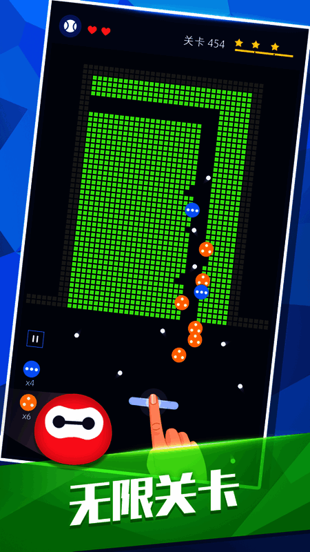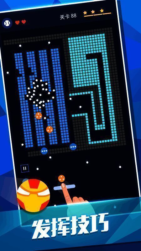 这是一款令人上瘾的砖块消除游戏,玩家需发射小球消除所有砖块,消除时会产生道具助力游戏。玩家可通过滑板操控球的弹起和角度。