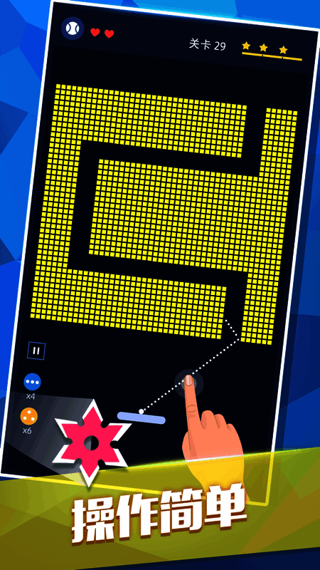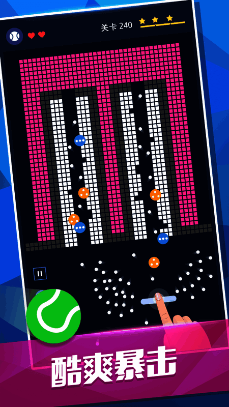 让屏幕中的方块和球不断反弹击打小砖块进行闯关,玩法很有魔性。