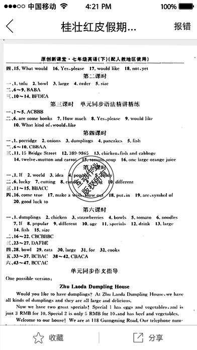3、寒暑假作业答案集:寒暑假作业后面被撕下的答案都能在此找到。