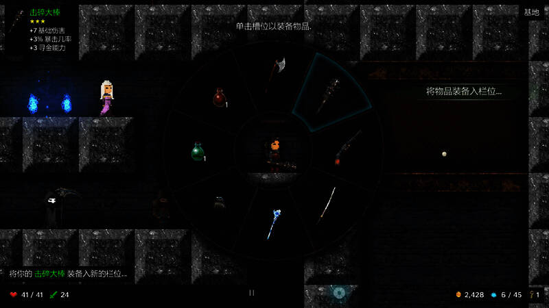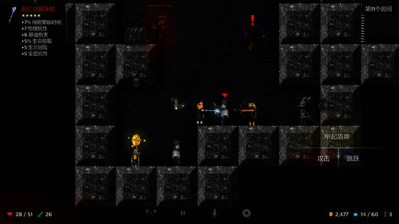 1、游戏关卡随机生成,玩家可在地牢中展开冒险,进行无限时间生存挑战,能一直玩下去。