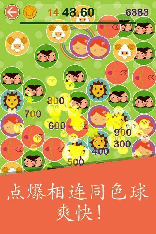 【星座彩球】在指定时间内点爆5色彩球,只要同色球3个及以上相连即可点爆。