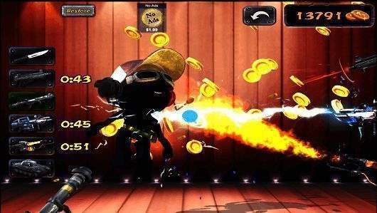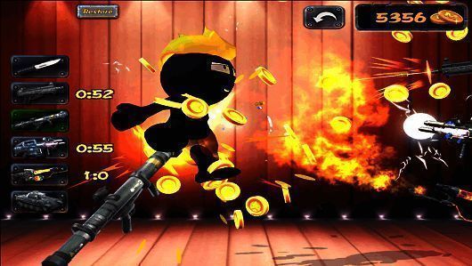 1. 用收集的金币给火柴人换造型,接着虐它。