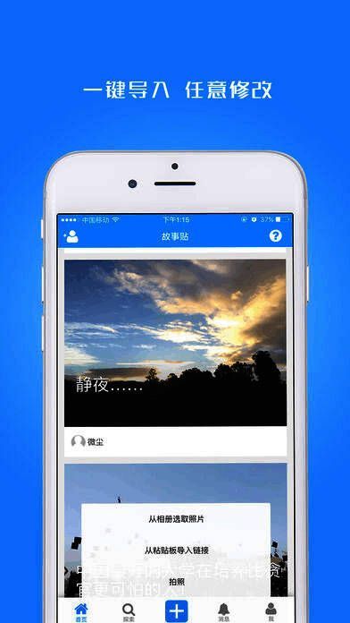 大家借助故事贴独特的图片文字拖拽排版功能,记录生活中的点滴趣事,让图文并茂的瞬间更具感动力量。