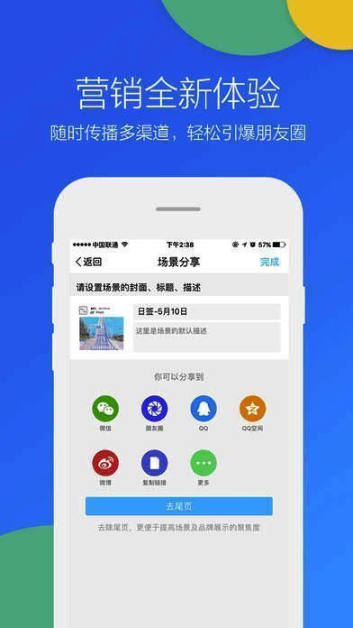 易企秀APP具备海量模板,能让你随时制作并即时上传。它可以一键生成动态音乐相册、节日贺卡、邀请函、产品介绍、企业宣传、公司招聘等多种场景页面,还能在微信、微博、朋友圈、QQ等多个渠道进行推广。同时,提供特效、动画等丰富高级操作,方便你随时随地查看场景浏览数据,收集表单数据以和客户建立紧密连接。