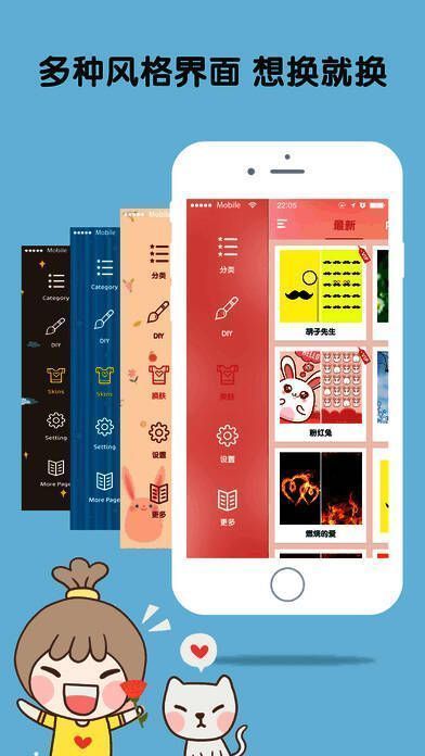 多种风格界面,随时更换;能随心 DIY 专属图片;全新萌主题,开启新体验;更多高清主题免费下载。