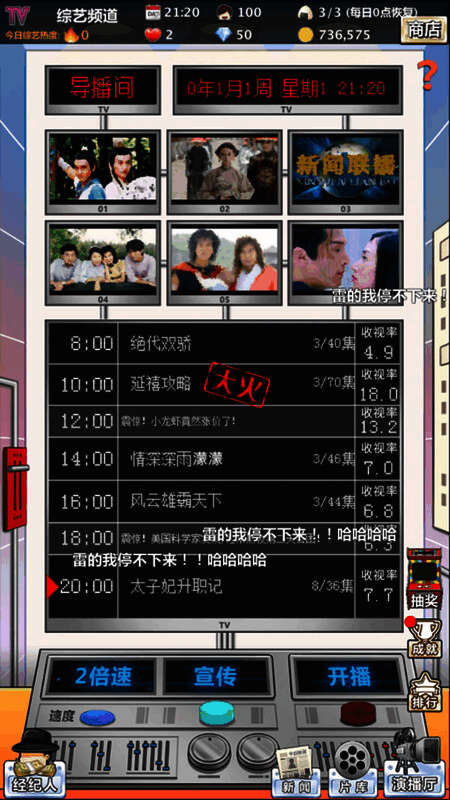1. 玩家化身为娱乐公司老板,开展各类投资制作电视剧。