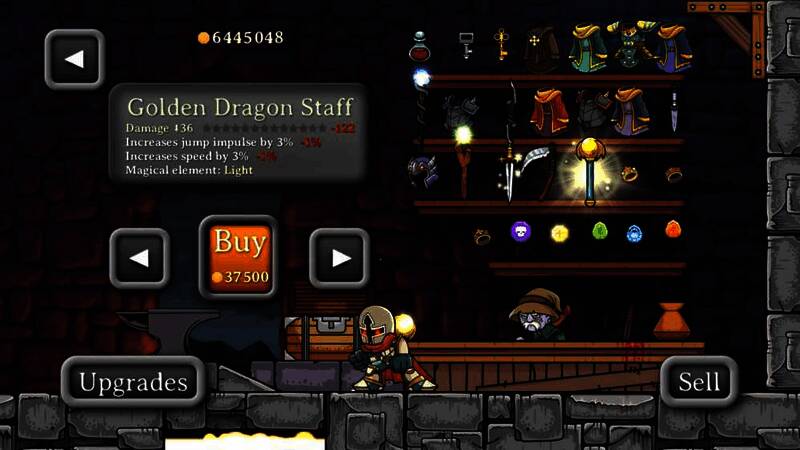魔法狂暴安卓版是一款经典且独特的动作RPG游戏。其画面制作精良,操作轻松上手。左下角虚拟按键控制人物左右移动,右下角虚拟按键控制人物跳跃、使用武器攻击。冒险关卡里会遭遇敌人,你需消灭他们,收集金块,升级武器、购买道具。游戏借鉴上世纪90年代玩法,外观和感觉引人入胜,若你怀念16位时代平台游戏,别错过!