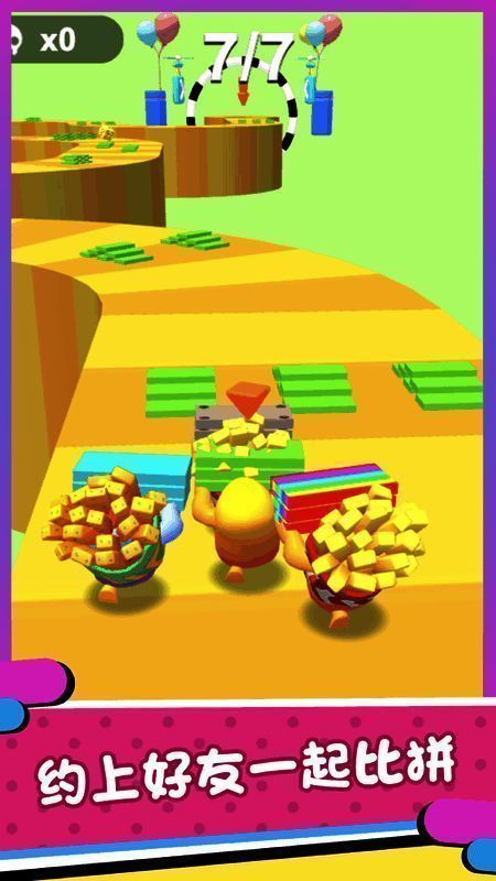通过灵活操作,操控赛道上的小人迅速收集更多砖块,从而顺利通过各种机关陷阱。