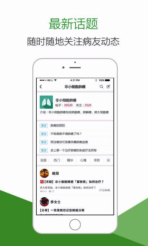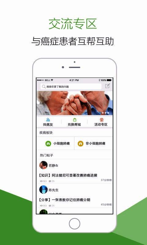 4、病友互动专区——让肺癌患者“抱团取暖”,互帮互助。