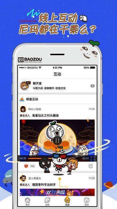 探索暴走漫画不为人知的一面;线上互动,了解王尼玛动态;聊天室可斗图、语音、闲聊;制作器能制作专属暴走漫画。
