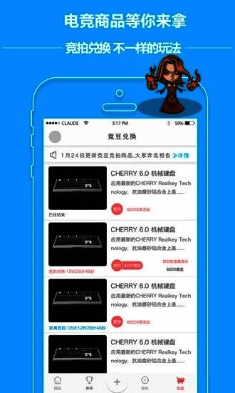 4、通过竞拍兑换等不同玩法赢取电竞商品;