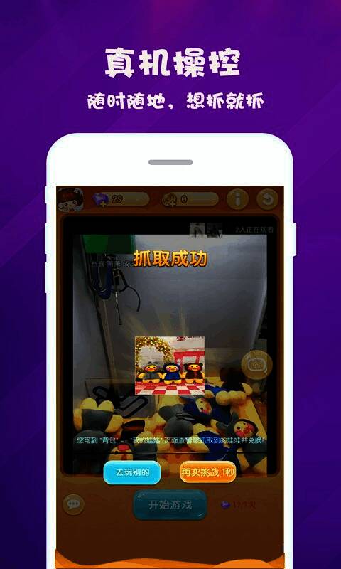 1、真机操控,畅享抓趣:用手机遥控真实娃娃机,无论公交上、被窝里,随时抓娃娃。
