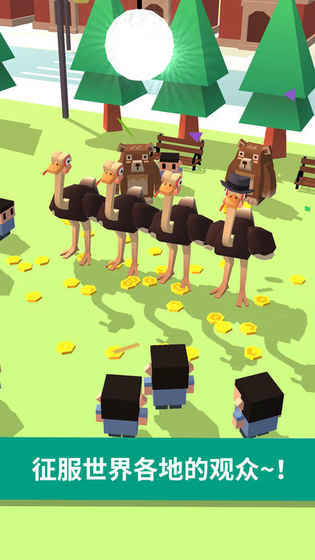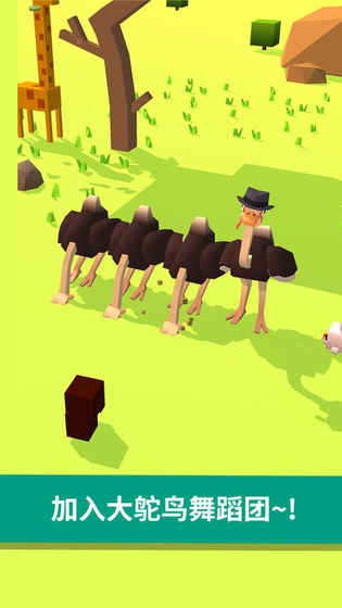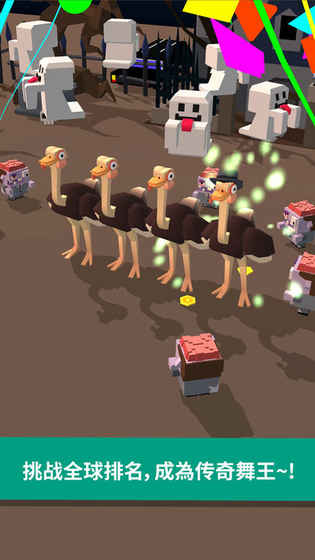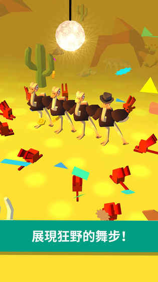 这是一款以动物为主题的休闲游戏,画面设计清新,玩法趣味十足。丰富的关卡设计,搭配有趣狂野的节奏,呈现真3D酷炫效果,兼具挑战性和趣味性,非常适合打发闲暇时光。灯光、音响、帽子等一应俱全,你可以加入大鸵鸟舞蹈团,参加世界各地的舞步大赛,为舞蹈团夺取至高荣耀。快和小伙伴们一起嗨起来吧!