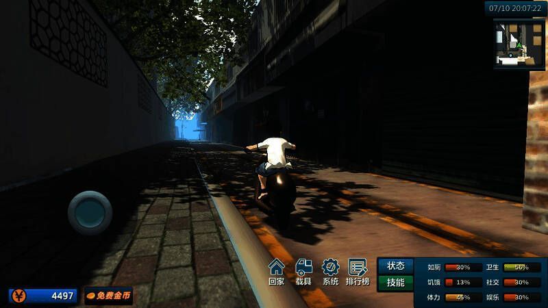 玩家需租房子,赚取金币解锁众多成就。此游戏高度模拟现实生活与社会考验,玩家可结合自身能力和经验,探索多样玩法。2000 年的深圳吸引众多人前去发展求职。
