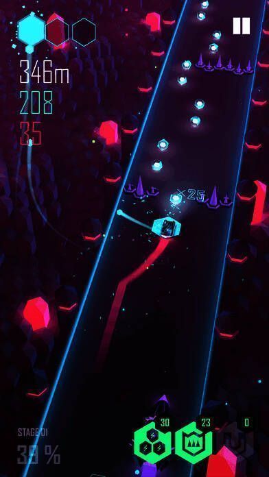 《节奏超跑》凭借炫酷的霓虹色彩和生动的场景令人眼前一亮。据Lila Soft透露,游戏深受电影《创:战纪》影响,其音效由电影原声带制作人Daft Punk打造,音乐品质极高。