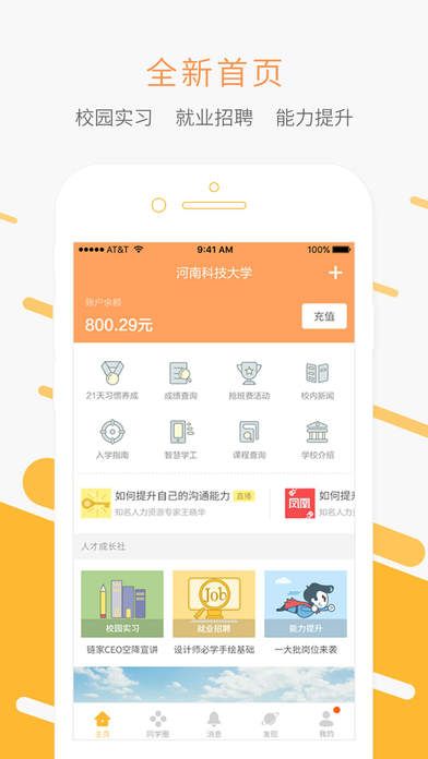 1、人才成长:校园实习、就业招聘、能力提升等惊喜不断。