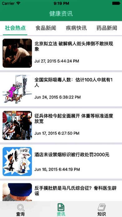 3、实时更新最新健康咨询、社会热点、食品新闻、药品新闻等;