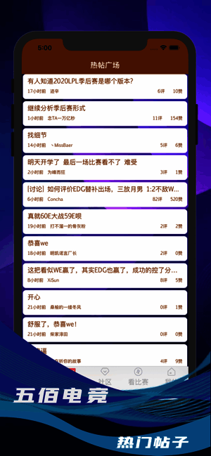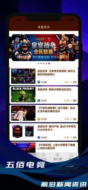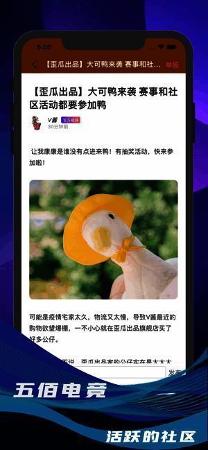 五佰电竞app是一款专业的电竞资讯平台,涵盖海量电竞资讯。用户能在社区畅快交流、自由发帖,探讨各类电竞话题,结识众多电竞爱好者。还能一手掌握赛事信息,直接在线报名,在线关注喜欢的战队,社区氛围活跃。
