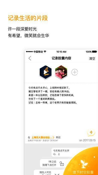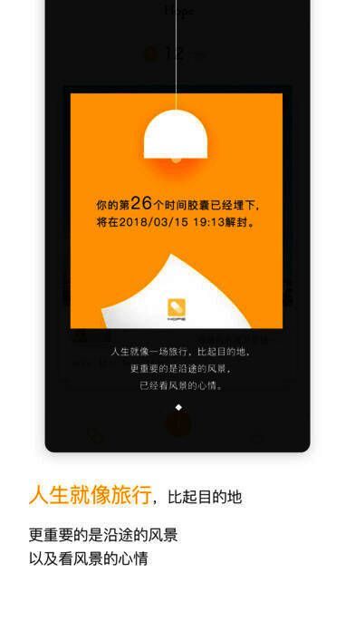 能规划个人目标,随时监督自己成为理想模样;埋下梦想种子,设定开启时间给未来的自己惊喜;随手记录心情,留下人生旅行足迹;发布心情漂流瓶,偶尔获他人回复不再孤单;每日有唯美生活句子推荐,带来美好阅读感受;画面精美、风格简约,使用体验佳。